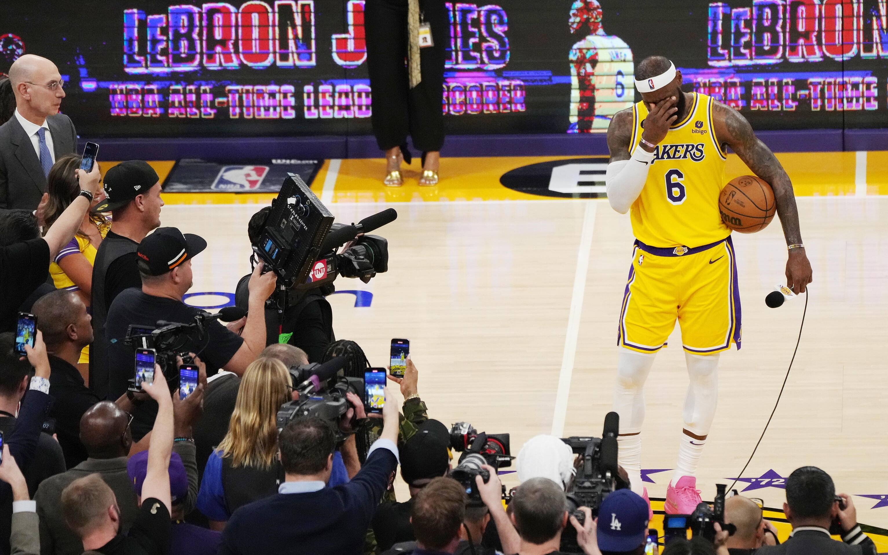Il sorpasso di James su Jabbar è avvenuto nel terzo quarto del match che i Lakers hanno poi perso contro Oklahoma City (133-130), in una Crypto.com Arena stipata da 20mila persone, tra le quali celebrità come John McEnroe e Magic Johnson, che hanno pagato fino a 24mila dollari (i posti a bordo campo) per assistere di persona all'annunciato sorpasso. Il gioco si è allora fermato ed un LeBron in lacrime, microfono in mano, ha preso la parola.