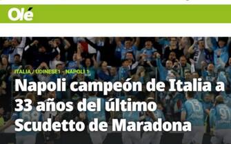 Esultante infine anche il titolo del principale quotidiano argentino, Clarin: "Napoli campione! Pareggiando con l'Udinese ha raggiunto il suo primo scudetto senza Maradona". Sotto il primo titolo del giornale online un secondo pezzo: "Napoli, fra il ricordo di Maradona e la convinzione che Diego lo ha reso possibile"
