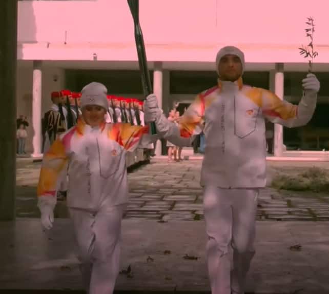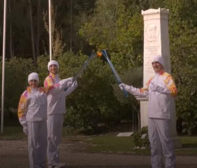 La grande sacerdotessa ha offerto la fiamma al primo tedoforo, il canottiere Petros Gaidatzis, bronzo Olimpico a Parigi 2024, che ha acceso la fiaccola di Milano-Cortina. Battezzata "Essenziale", per il suo design minimalista, la fiaccola è composta da una lega di alluminio e ottone riciclati dal peso di 1060 grammi, ed evidenzia la "purezza" della fiamma e il suo alto valore simbolico. All'atleta è stato porto anche un ramoscello di ulivo, simbolo di pace e di fraternità tra i popoli.