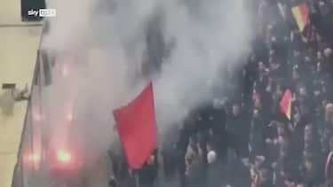 Decine di automobilisti hanno segnalato la "battaglia" in corso sulla carreggiata, dove gruppi di giovani incappucciati, armati di mazze e bastoni, si sono fronteggiati bloccando il traffico per alcuni minuti.