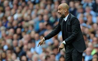 Nonostante un avvio positivo con cinque vittorie nelle prime cinque partite, Guardiola chiude il primo anno senza alcun trofeo: eliminato al quarto turno della Coppa di Lega dal Manchester United di José Mourinho, eliminato in Champions League agli ottavi di finale dal Monaco, fuori nella Coppa d'Inghilterra in semifinale contro Arsenal e terzo in Premier League