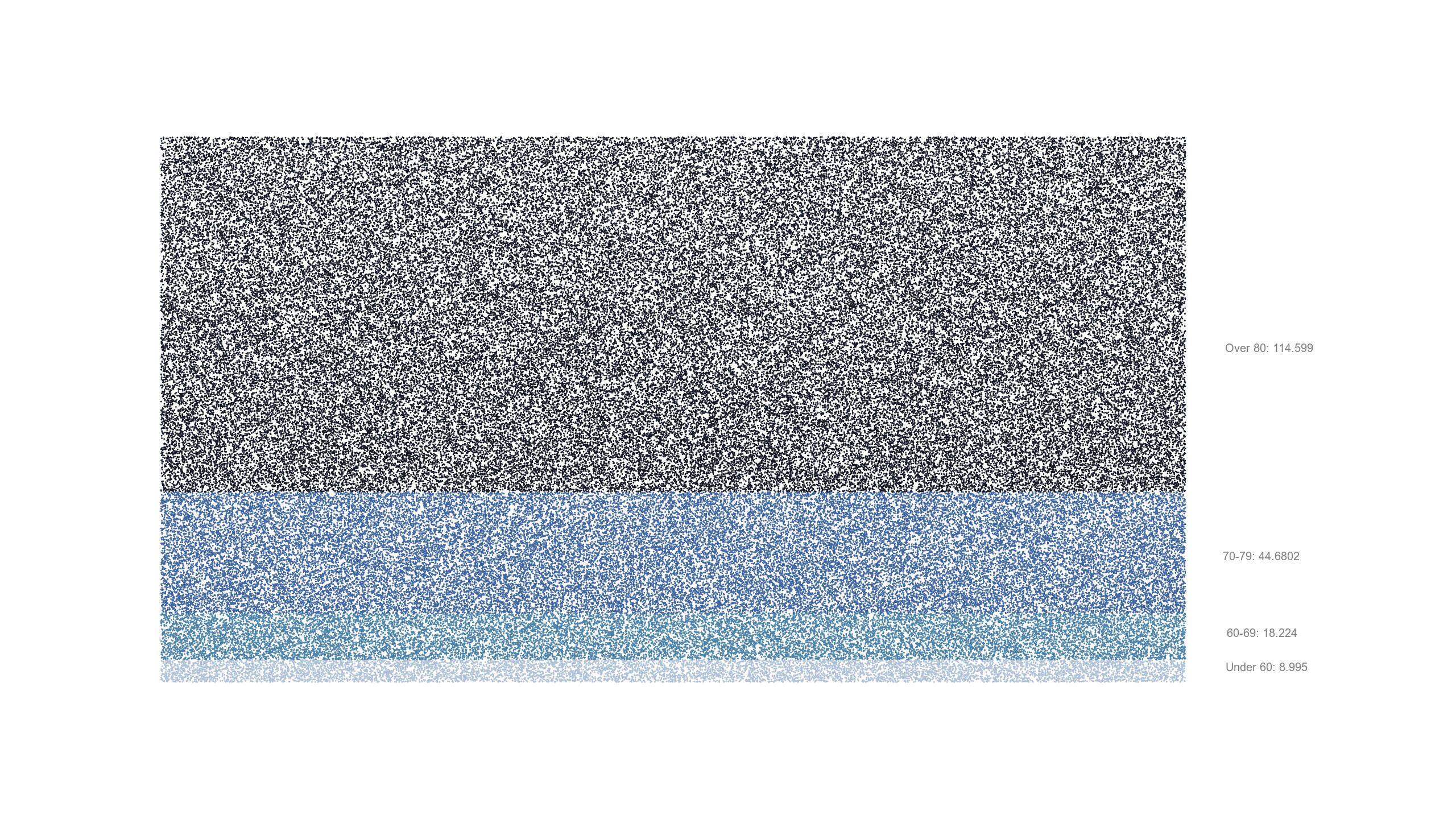 Nel maggio del 2022 i morti causati dal Covid negli Stati Uniti raggiunsero la drammatica cifra di 1 milione. In quell'occasione il quotidiano New York Times pubblicò un'inchiesta corredandola di visualizzazioni che utilizzavano dei punti neri per rappresentare i decessi.