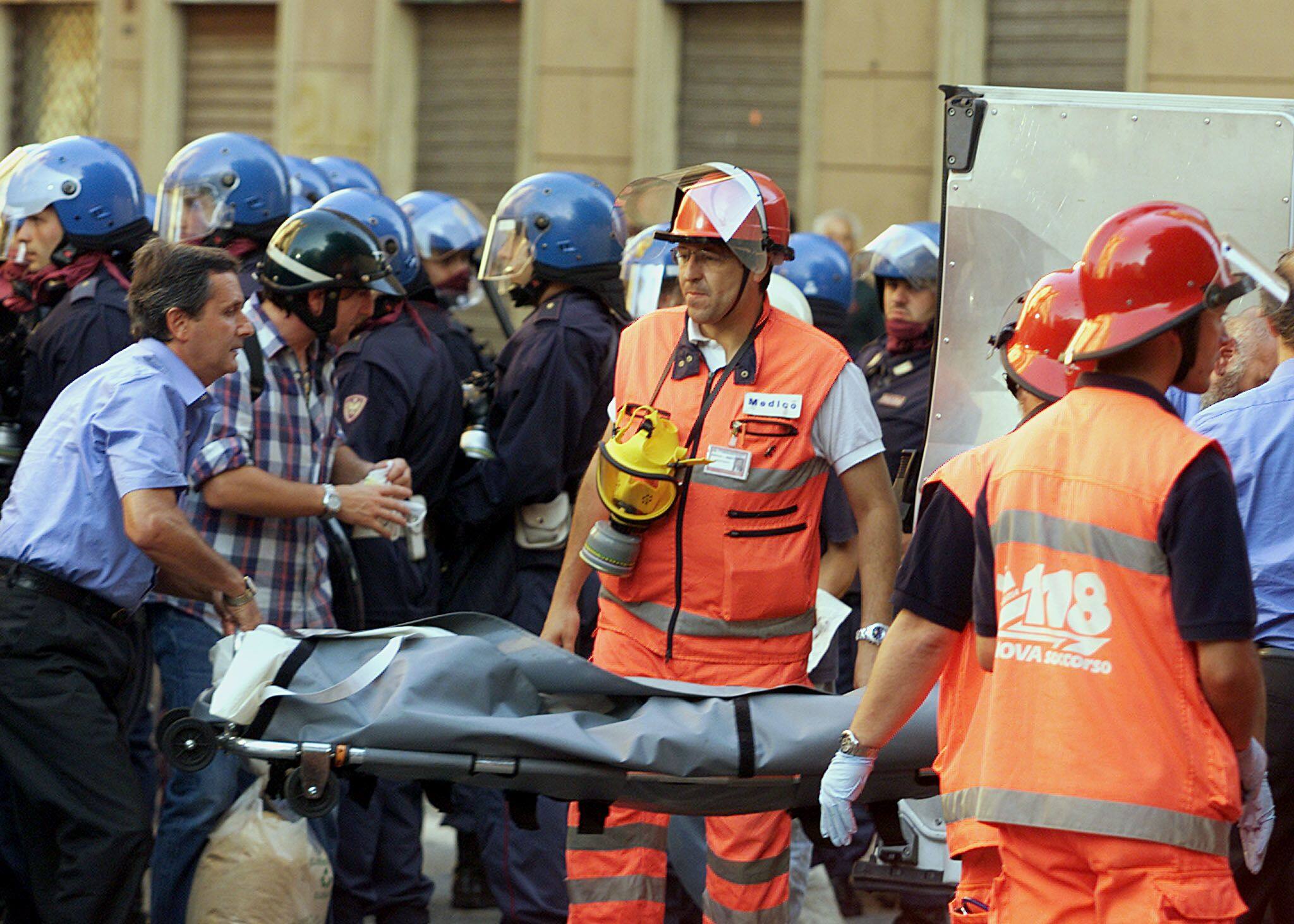 Dalla scuola, alla fine del raid, esce una fila ininterrotta di barelle. Su un totale di 93 arrestati, si contano 61 feriti, tre dei quali in prognosi riservata e uno in coma. Le immagini di quella notte fanno il giro del mondo.