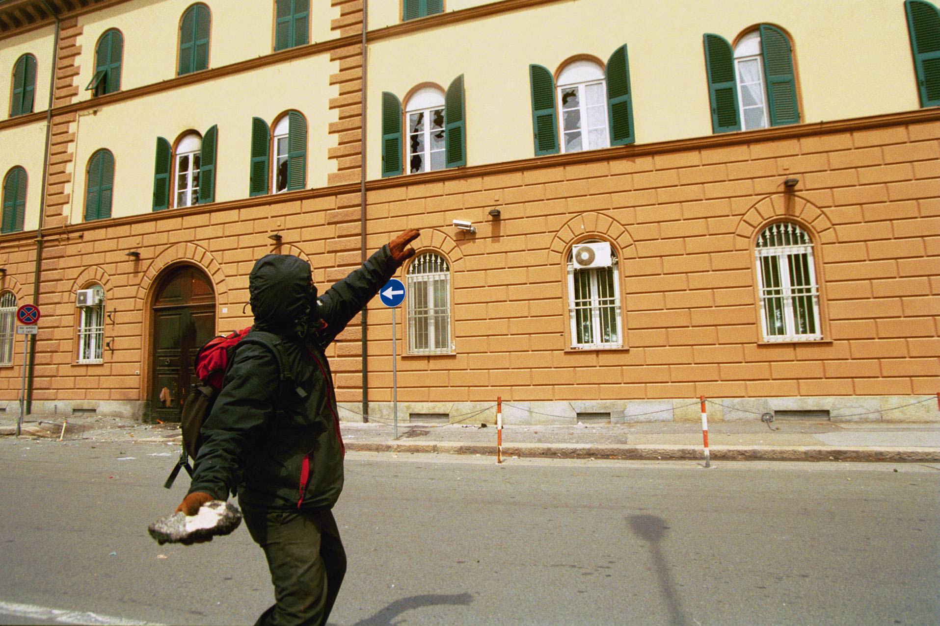 Il giorno prima, le strade della città sono invase dal corteo dei Migranti, un gruppo di 50mila manifestanti di ogni nazionalità che vuole esprimere solidarietà al popolo degli ultimi. Sfilano da piazza Sarzano a suon di tamburi e musica. Chi con le mani dipinte di bianco, chi portando con sé valigie di cartone per ricordare che anche l'Italia è paese di emigrazione. Tutto si svolge senza grandi tensioni. Eppure, a meno di 24 ore di distanza, quel clima disteso di festa e il sogno di "un altro mondo possibile" diventa già un ricordo.