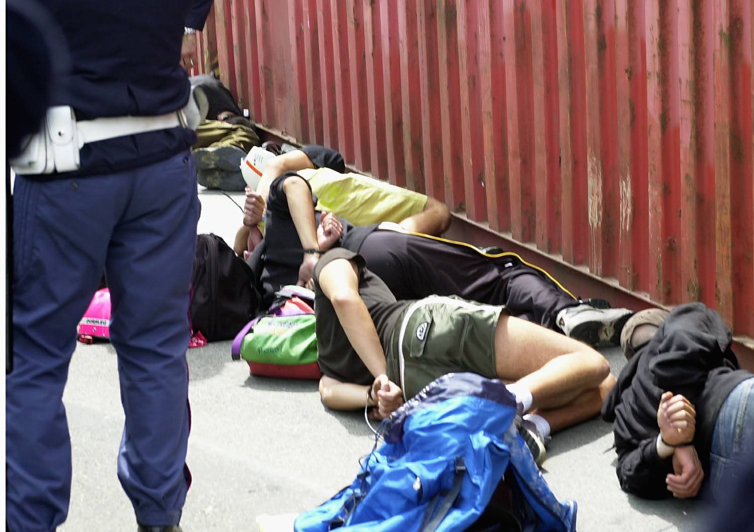 Una perquisizione durata due ore, nella quale le forze dell'ordine colpiscono con violenza i manifestanti.