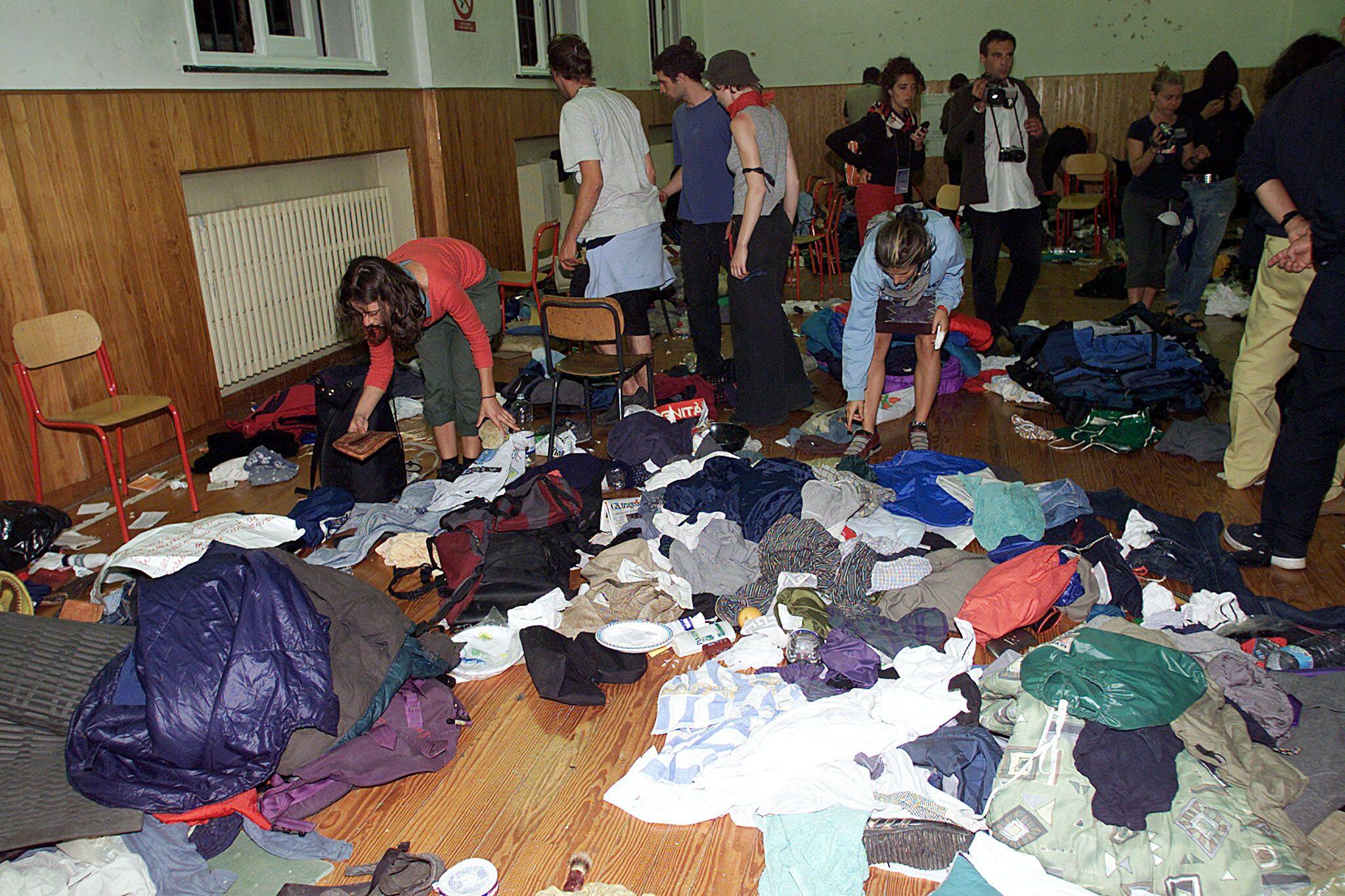 Dentro è pieno di sacchi a pelo, zaini, qualche provvista per fare colazione prima di ripartire l’indomani. In molti già dormono, in tanti si apprestano a farlo quando, intorno alle 23 del 20 luglio, a summit ormai concluso, le forze dell’ordine fanno irruzione.