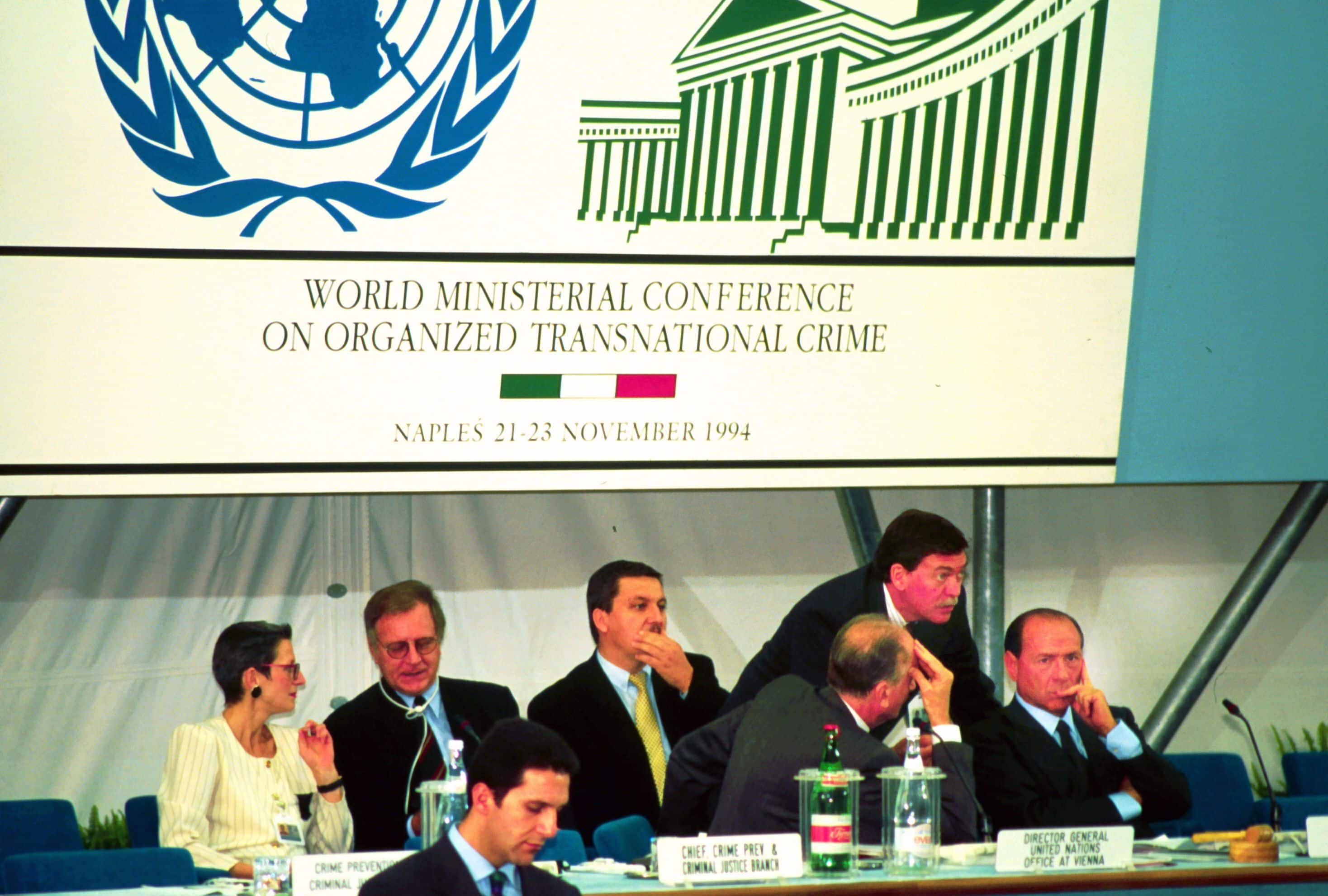 Mandato di comparizione recapitato a Silvio Berlusconi a Napoli durante una conferenza internazionale sulla criminalità.