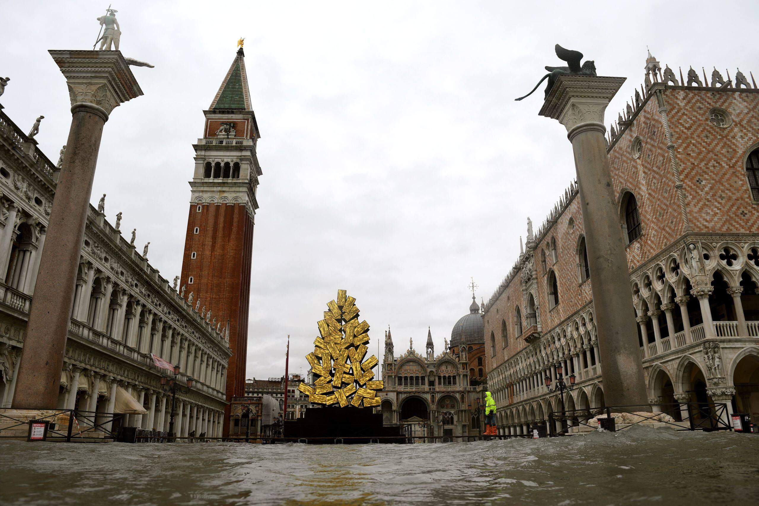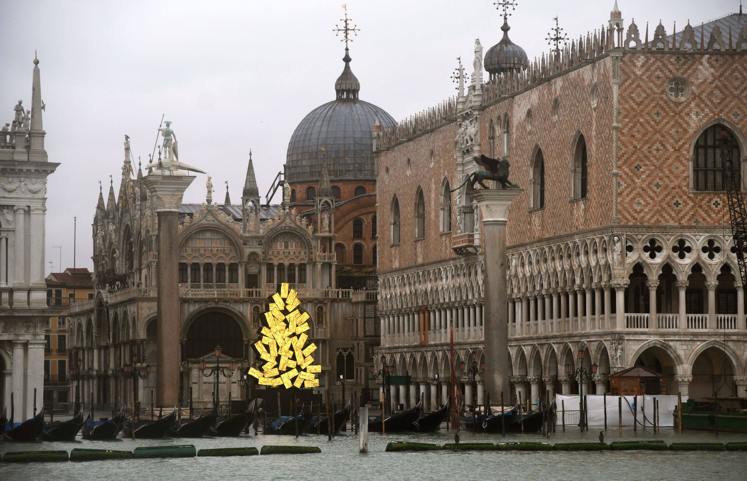 "L'idea per questa installazione è scaturita dal mio grande amore per Venezia: ho immaginato un gigantesco mosaico dorato, che richiama l'oro della Basilica, in cui ogni tassello vive di vita propria", racconta l'artista Fabrizio Plessi (nella foto), autore dell'installazione.