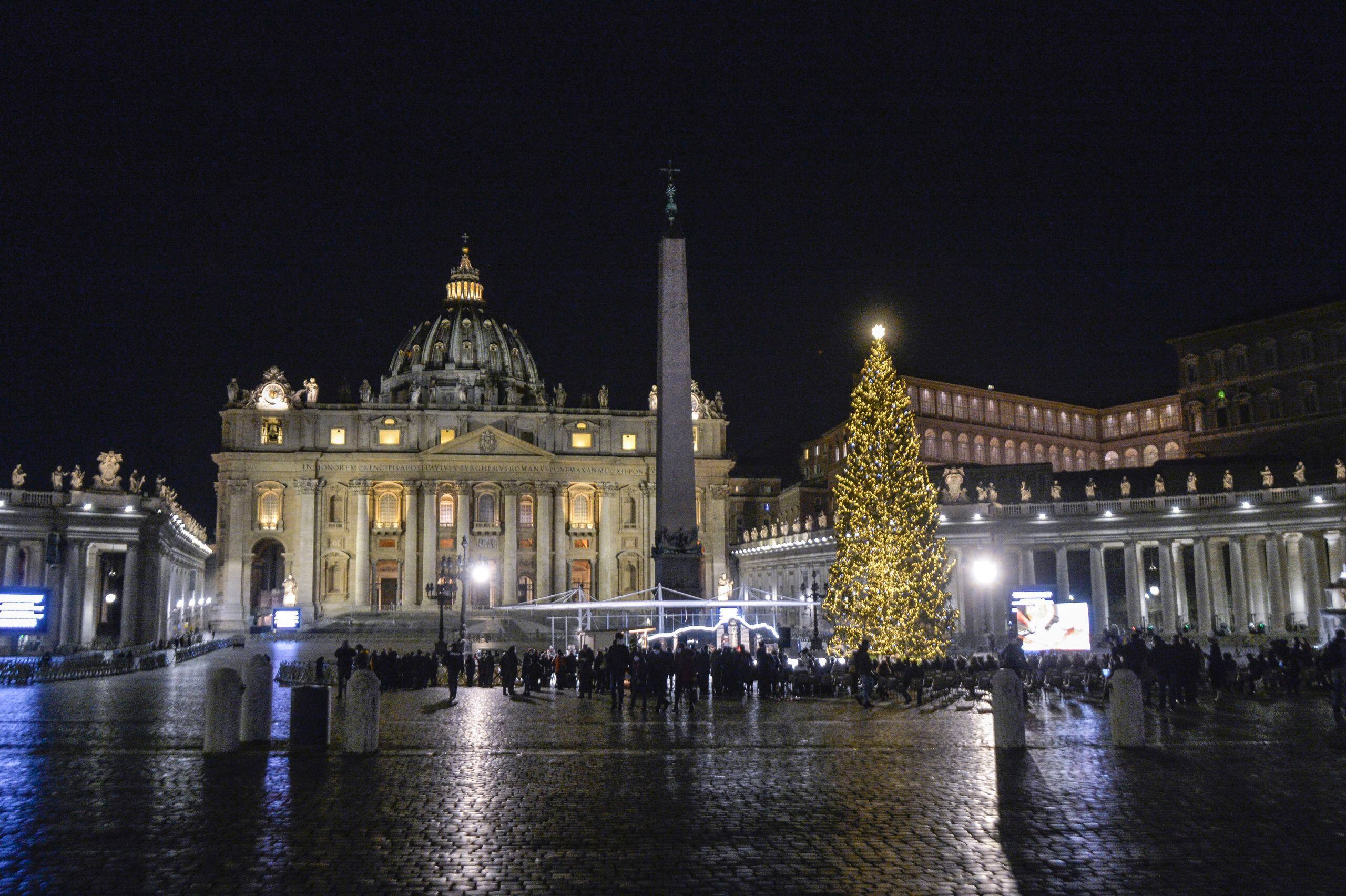 In Piazza San Pietro è un abete rosso sloveno alto 28 metri a testimoniare ai fedeli l'arrivo del Natale. Ai suoi piedi la scultura "Angels Unawares", un presepe realizzato in ceramica italiana.