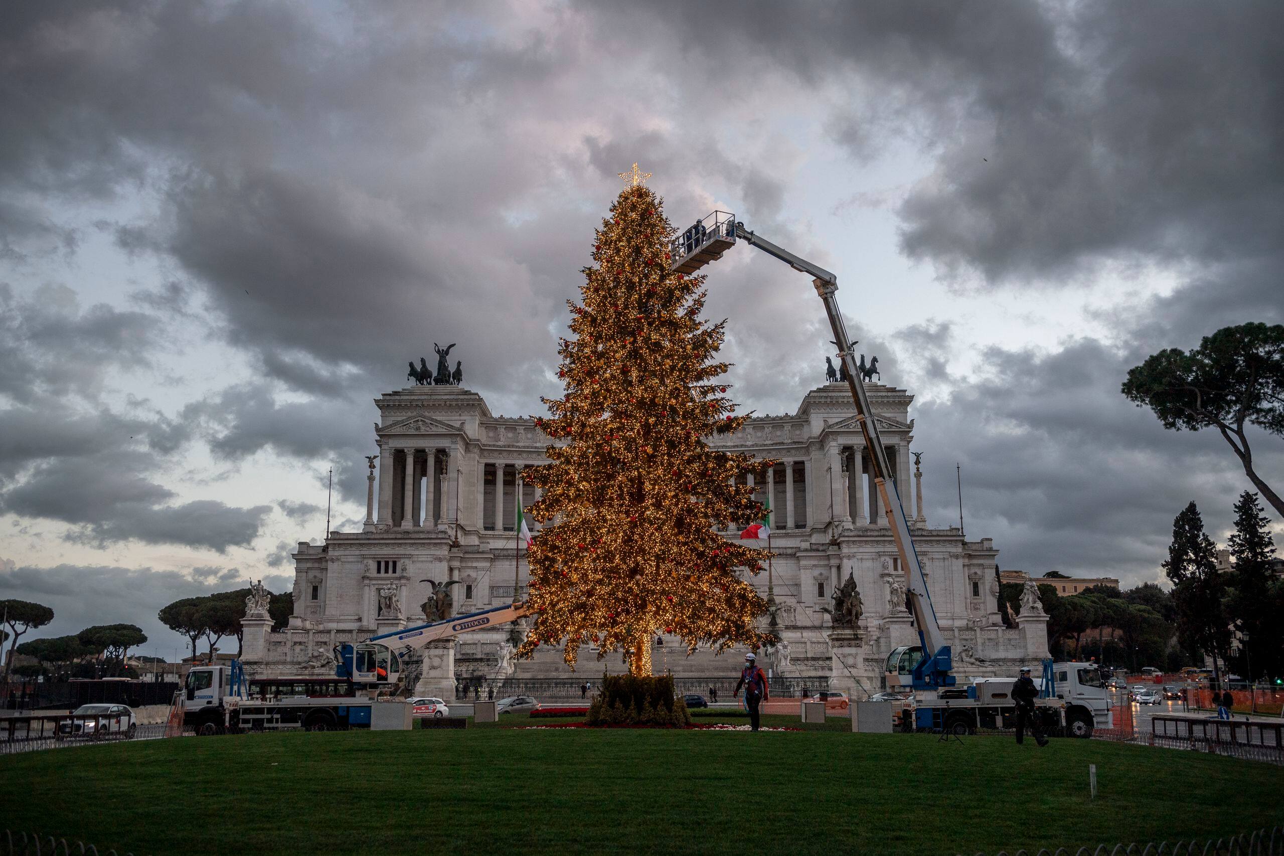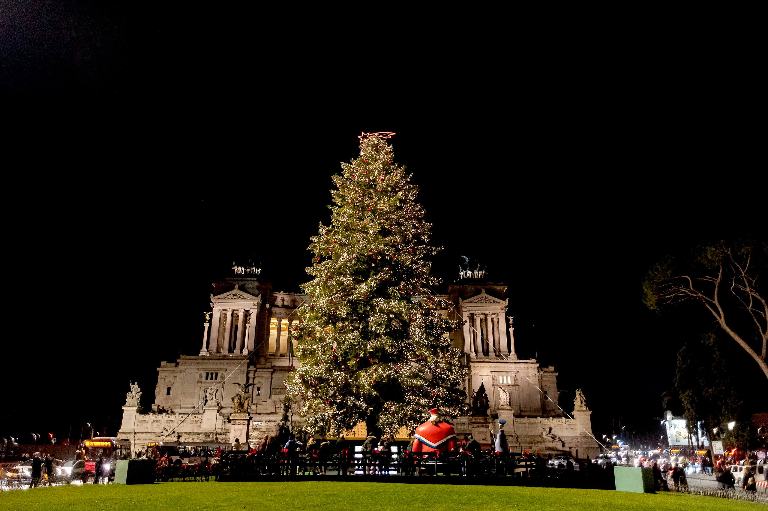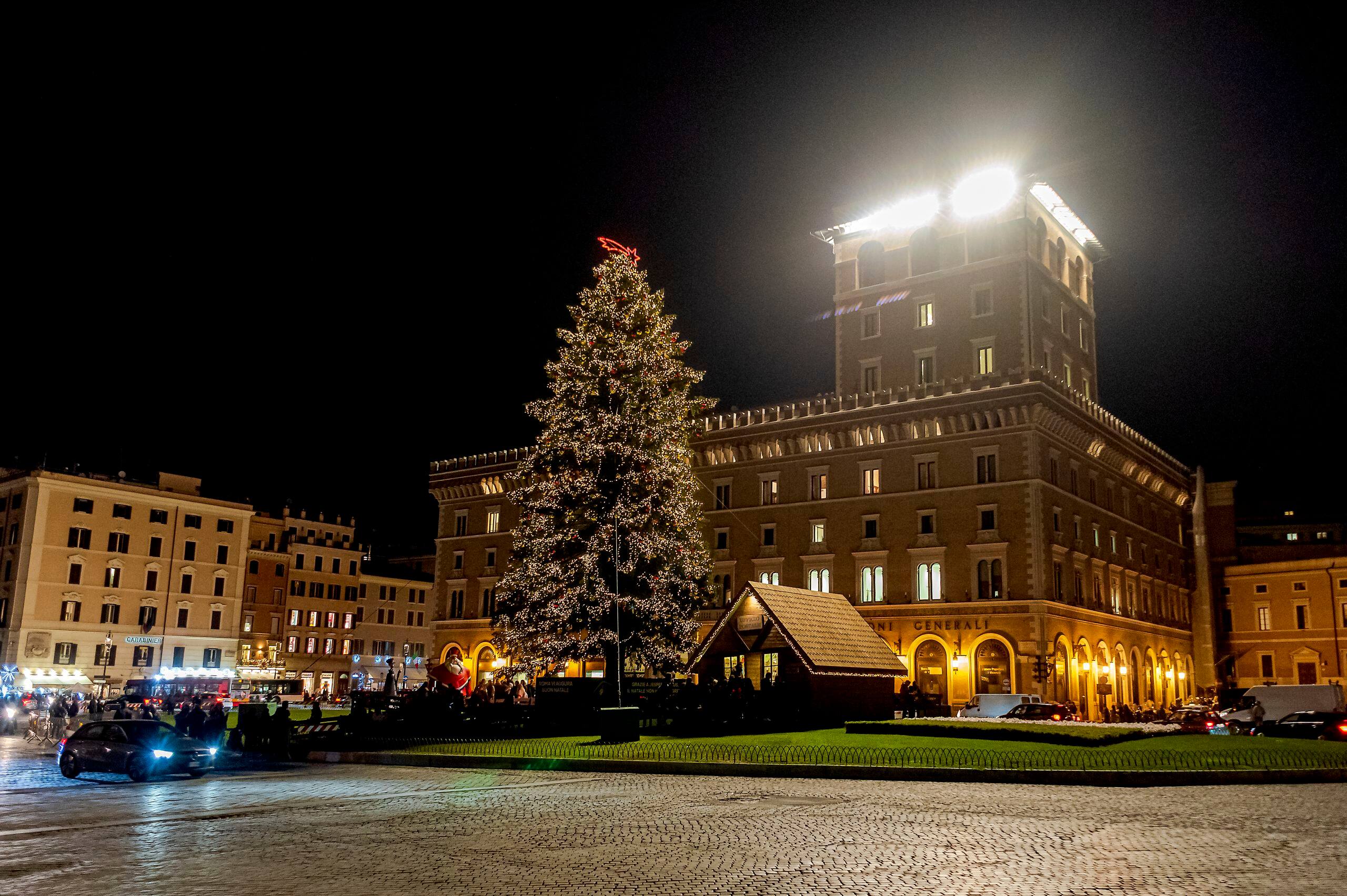 In piazza Venezia torna "Spelacchio", l'albero di Natale della Capitale. Intanto tutte le strade della città si accendono di luci e colori, pure grazie alle iniziative dei privati.