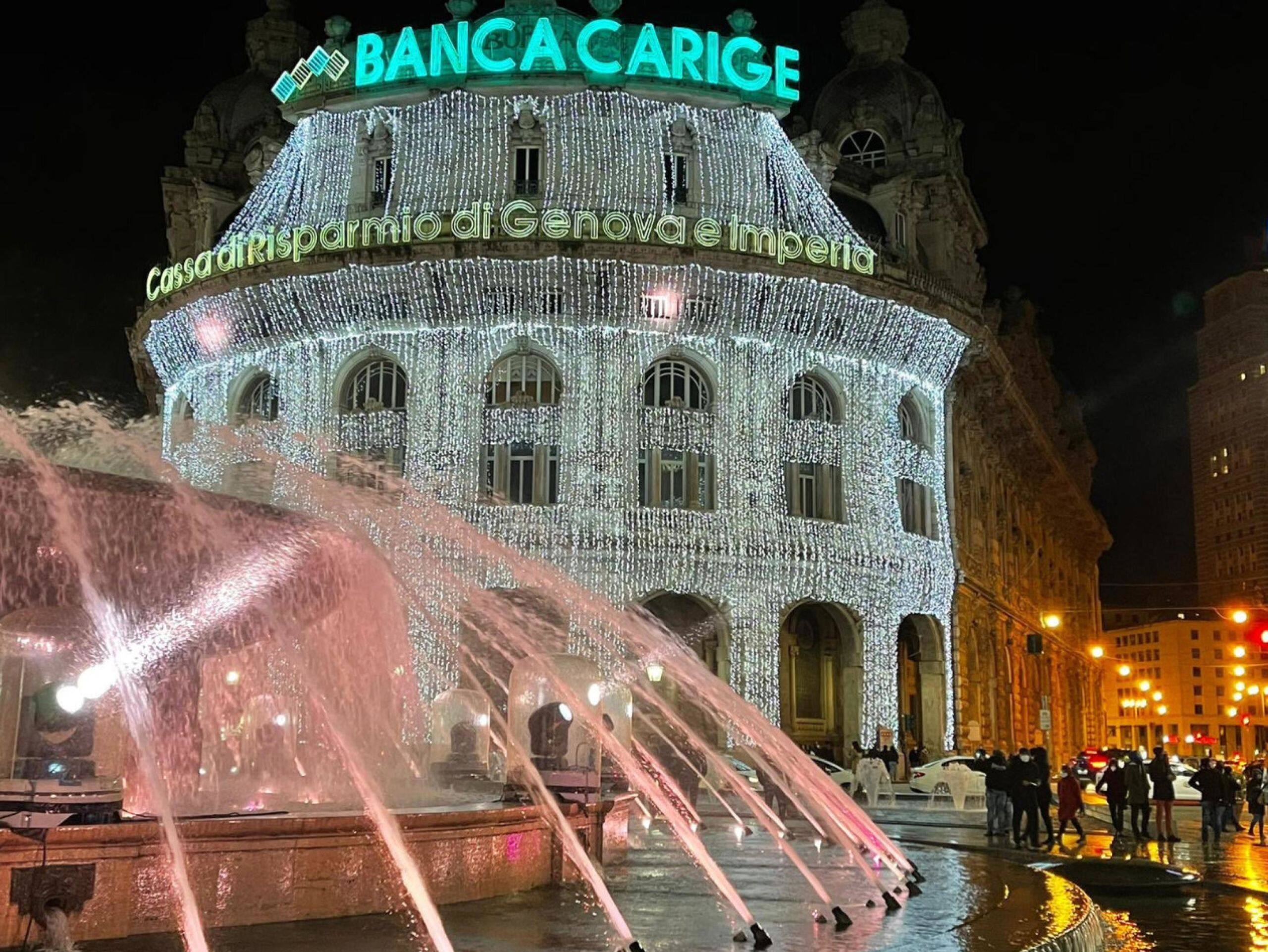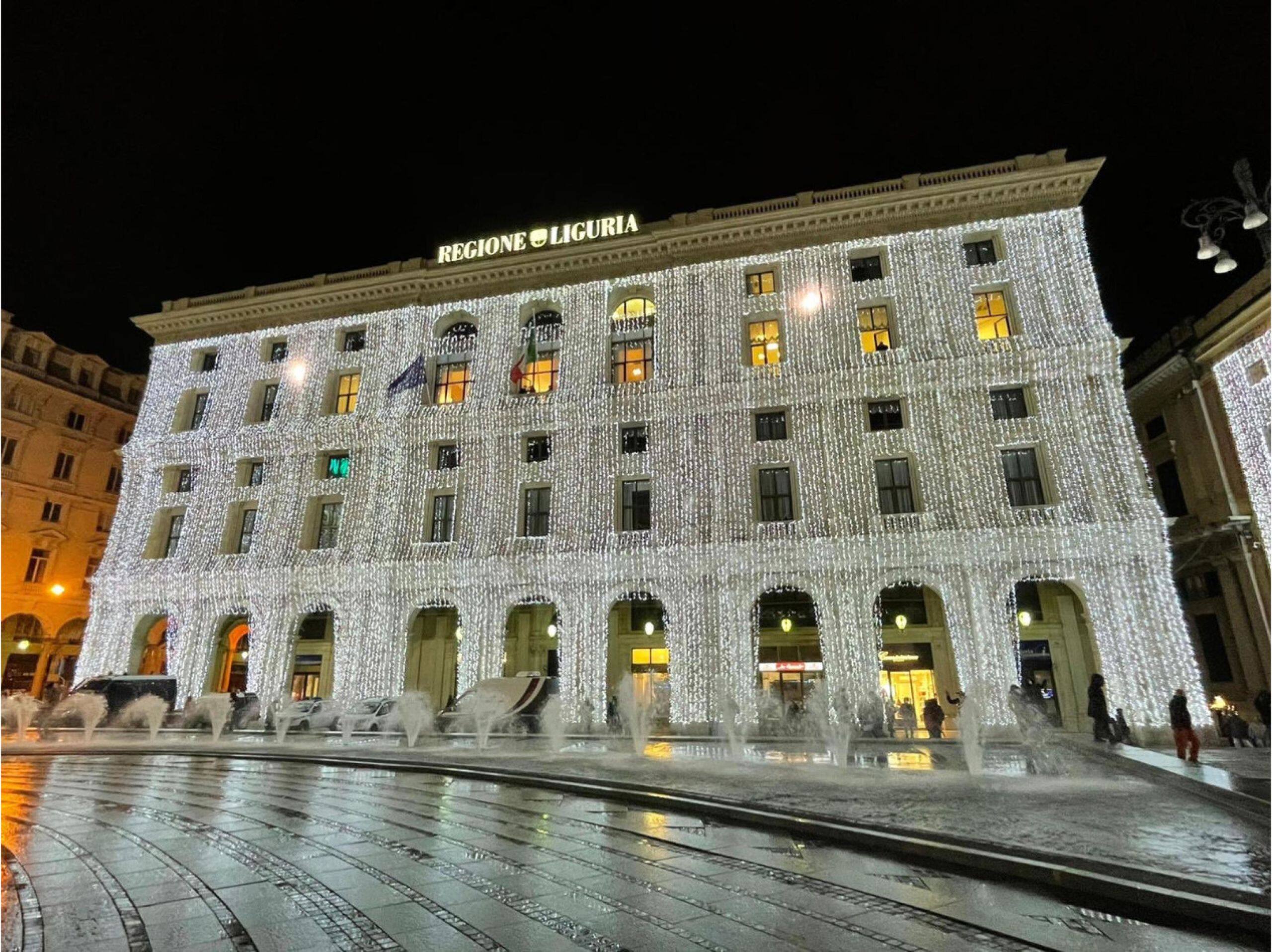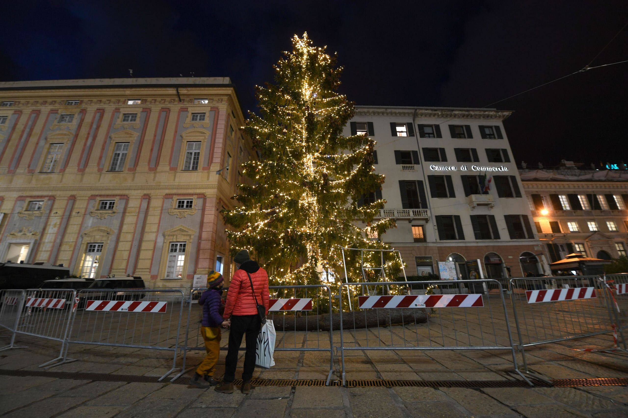 A Genova il tradizionale albero di Natale nel cuore della città si accende sullo sfondo del Palazzo della Regione illuminato a festa da un milione di lampadine. Un'accensione, quella di quest'anno in Piazza De Ferrari, senza annunci per evitare assembramenti, pur rispettando la tradizione.