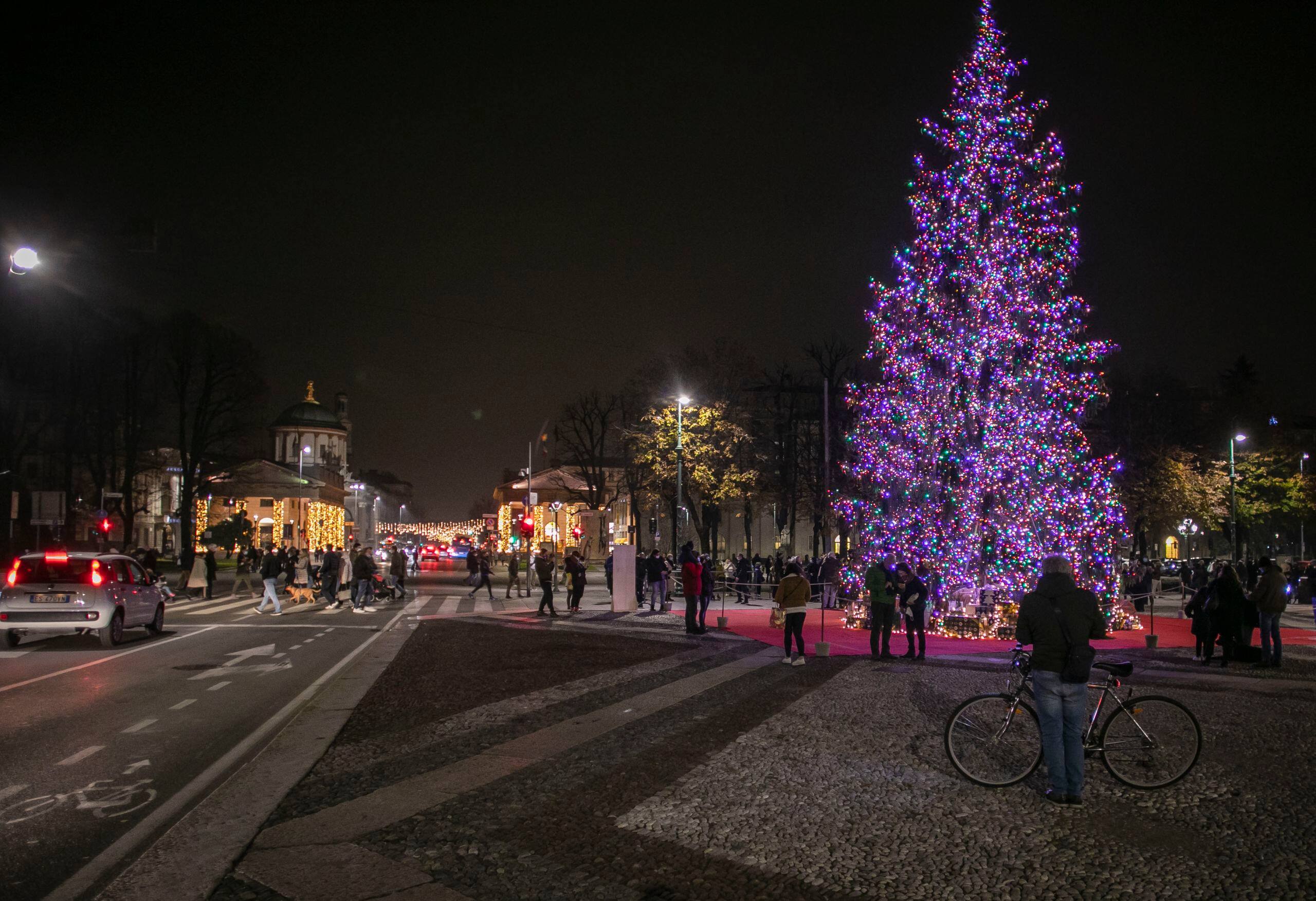 Fra le zone più colpite durante il primo lockdown, con la foto simbolo dei veicoli dell'esercito che trasportano fuori città le bare per mancato spazio nel cimitero cittadino, Bergamo accoglie nel suo centro storico un abete donato alla città dalla Val Seriana.