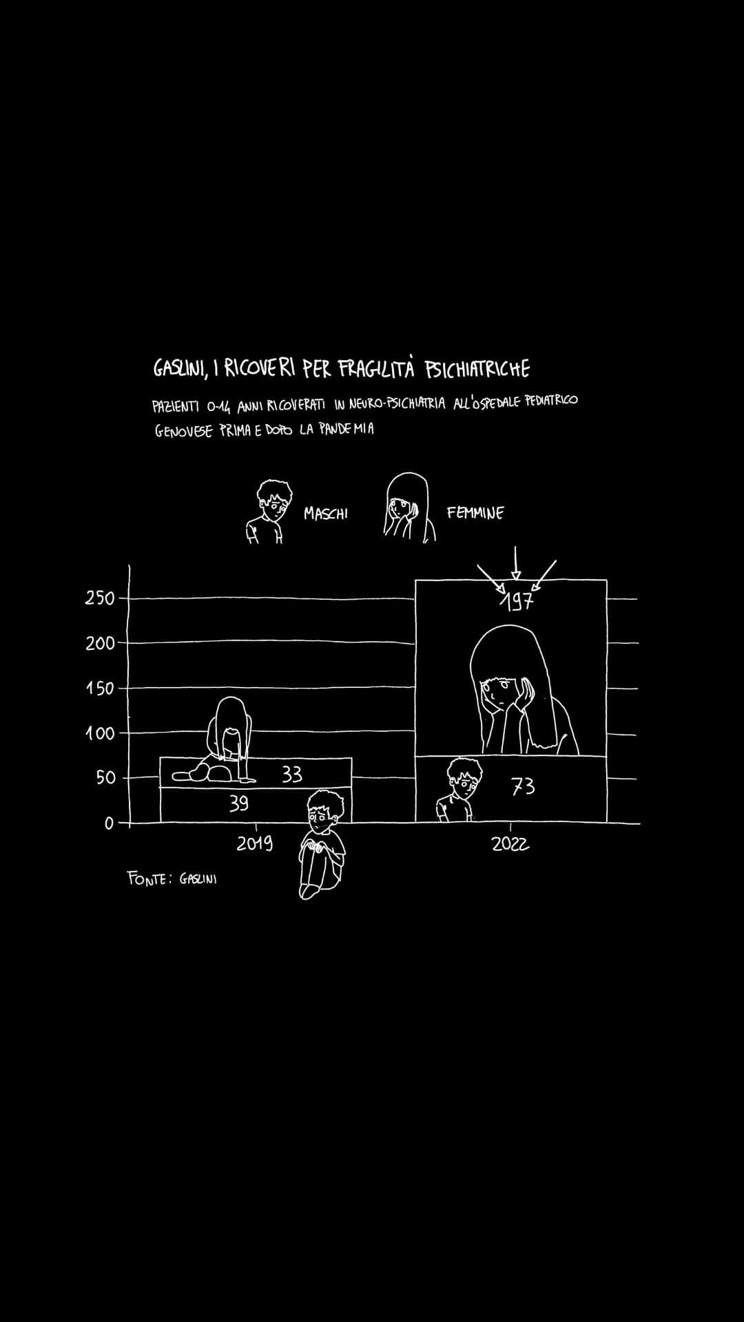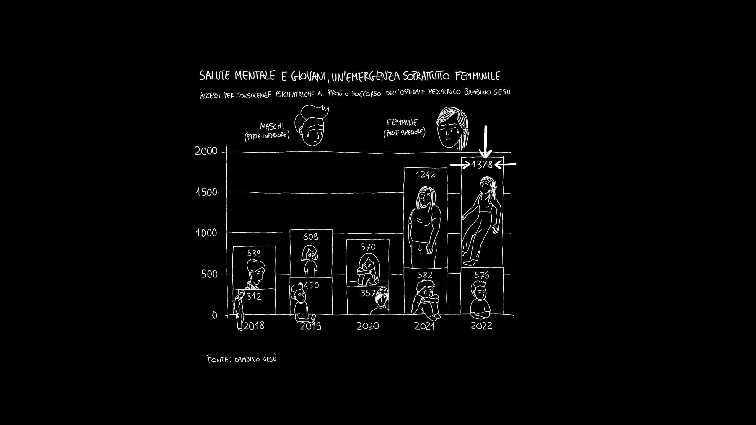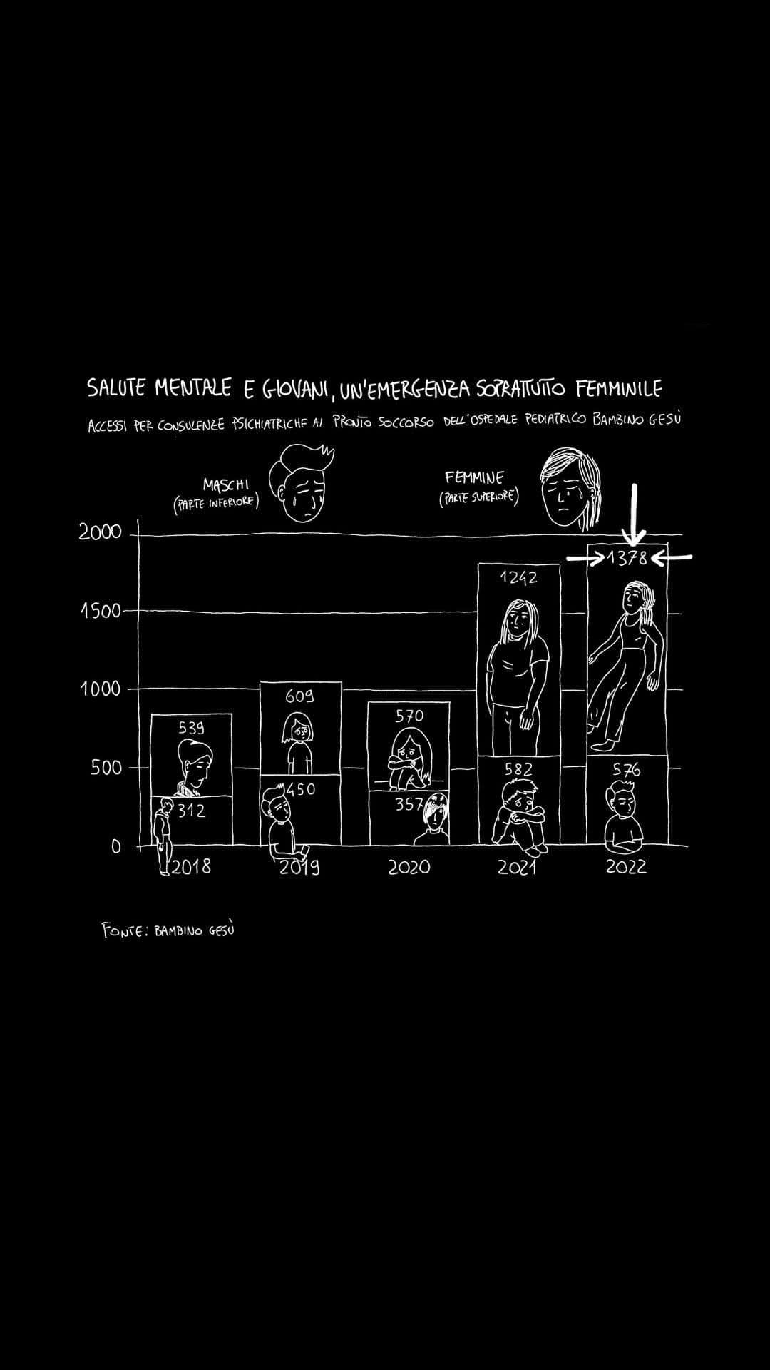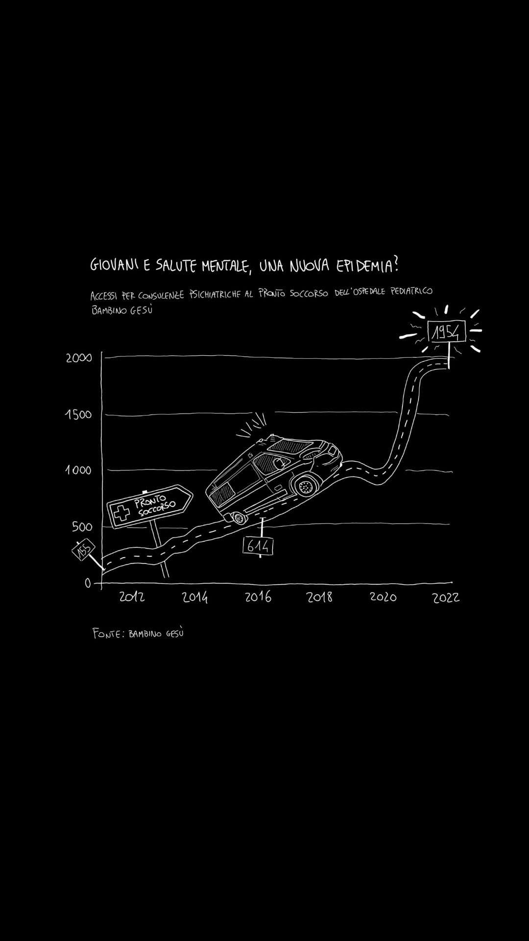 Personaggio ricorrente nelle sue storie, rappresentata come una creatura tutta nera, è l'ansia. La sua, la nostra. In questa inchiesta a fumetti, o in questo fumetto d'inchiesta, fate voi, Marinaccio e le sue ansie esplorano uno uno dei temi più drammatici, urgenti e dimenticati del nostro tempo: la salute mentale dei più giovani.