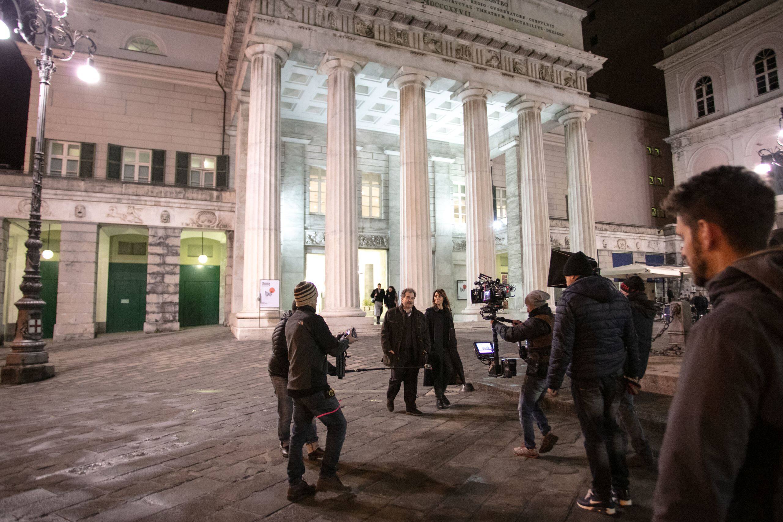Genova è la terza protagonista della storia crime e mi richiama alla mente Fabrizio De Andrè: è stato bello visitare uno spazio a lui dedicato nei vicoli della città. Genova si presta molto bene alla trasposizione italiana del romanzo, che è ambientato a Barcellona. Ha tantissimi luoghi interessanti da inquadrare, i caruggi -dove la parte gialla è ambientata -è un luogo di fatti loschi. Poi c’è la zona nuova, magnifica, più legata alla contemporaneità e alla modernità. È una città verticale, c’è la funicolare: qui Petra si prende il suo tempo per pensare quando va al lavoro. Lei abita nella parte alta, nobile, di Genova.