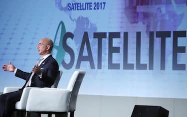 Jeff Bezos durante la conferenza Satellite 2017 (Getty Images)