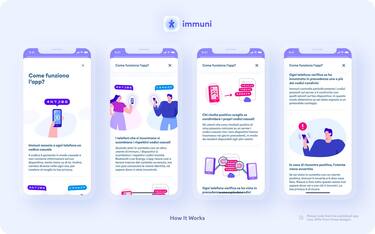 Nella giornata di oggi sono state caricate anche le prime immagini di Immuni sul sito del ministero. Sono innanzitutto dedicate allo "status" dell'app e ricordano che il servizio resta attivo anche se l'applicazione dovesse essere chiusa. Quanto al caricamento dei dati, si avvisa che è necessaria "l'assistenza di un operatore sanitario autorizzato". Tra i dati che verrano caricati anche la zona di provenienza, la provincia, e le informazioni epidemiologiche, "ad esempio la durata della tua esposizione a un utente positivo". L'alert che rileva il contatto a rischio è di colore arancione. All'utente viene chiesto se ha manifestato certi sintomi: "febbre di qualsiasi grado, tosse, affaticamento, difficoltà respiratoria e perdita di gusto o olfatto". Se la risposta affermativa si segue una procedura d hoc, in caso contrario si è invitati a seguire "semplici accorgimenti" fino alla data stabilita, come "restare in casa" e "rispettare le misure di distanziamento fisico (almeno un metro)". L'app racconta il suo funzionamento: Immuni associata a ogni telefono un codice casuale, i telefoni che si avvicinano scambiano i rispettivi codici casuali e in caso di riscontro con un positivo l'utente viene avvertito. Si passa per una serie di interfacce che chiedono di attivare le notifiche di esposizione al Covid, e il Bluetooth, che è la tecnologia di base. Nella notizia, che accompagna la scheda del progetto dell'app, si sottolinea come Immuni abbia "lo scopo di migliorare efficienza e velocità nell'individuare soggetti che hanno avuto contatti con persone risultate positive agli esami di laboratorio. Il nuovo sistema potrà contribuire anche all'individuazione di eventuali nuovi focolai. Tutto questo nel rispetto della privacy e della sicurezza individuale e nazionale".