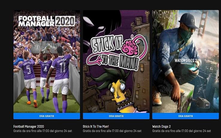Sull’Epic Games Store sono disponibili tre nuovi giochi gratis da scaricare. Si tratta di Watch Dogs 2, Football Manager 2020 e Stick it to the Man! I nuovi titoli, che saranno disponibili fino a giovedì 24 settembre, prendono il posto del gestionale ferroviario Railway Empire e dell’avventura narrativa Where the Water Tastes Like Wine. La settimana prossima, invece, l’Epic Games Store regalerà a tutti gli utenti RollerCoaster Tycoon 3: Complete Edition.