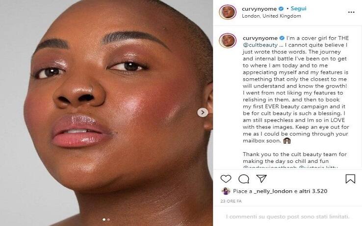 La decisione è arrivata in seguito alle polemiche riguardati la rimozione delle foto che la modella di colore per taglie forti Nyome Nicholas-Williams aveva pubblicato sul suo account @curvynyome