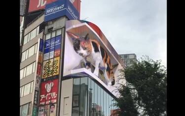 Tokyo, enorme gatto in 3D alla stazione di Shinjuku