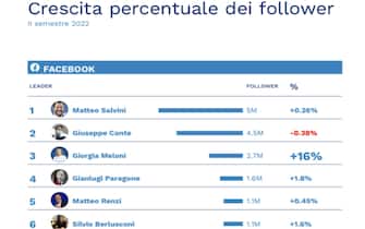 Politici sui social: Matteo Salvini il più seguito, cresce Giorgia Meloni. I dati del 2022