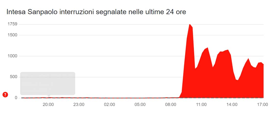 Le prime segnalazioni sono arrivate su Down Detector, servizio online che raccoglie le segnalazioni degli utenti che riscontrano disservizi di qualsiasi tipo, intorno alle 9 di questa mattina. I report sono poi continuati nel corso della giornata con picchi nei momenti di punta, all’ora di pranzo e intorno alle 17. Per gli utenti risulta impossibile portare a termine l'accesso all'home banking e non possono fare nulla per risolvere autonomamente il problema. Non si può fare altro che attendere che il disservizio venga risolto dai tecnici della banca.
