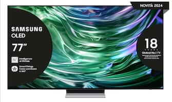 - Un’altra TV Samsung di fascia alta, con pannello OLED da 77 pollici e risoluzione 4K. Dotata di Processore NQ4 AI GEN2 e design Infinity One, offre il supporto a DVBT-2, Q-Symphony e Dolby Atmos per un’esperienza audio avanzata. Compatibile con Bixby, Alexa e Google Assistant. Disponibile su Amazon in Carbon Silver, modello 2024, con classe di efficienza energetica F, al prezzo di 2.399,00 euro, con uno sconto del 14%