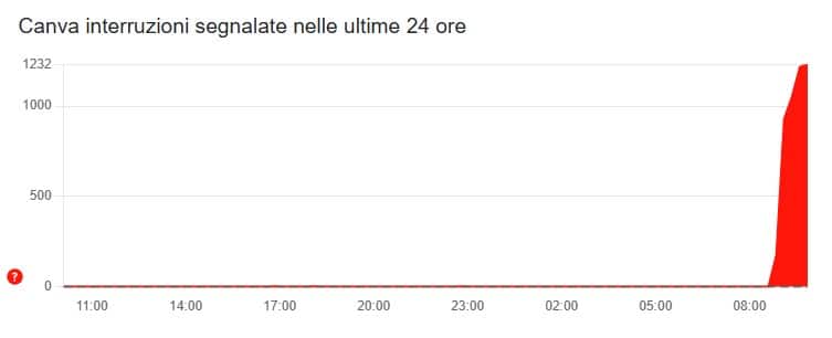Gli utenti di Canva hanno iniziato a segnalare su Down Detector una serie di difficoltà a partire dalle ore 8 di oggi, 20 ottobre. Il numero di segnalazioni è poi aumentato drasticamente nel giro di un'ora.