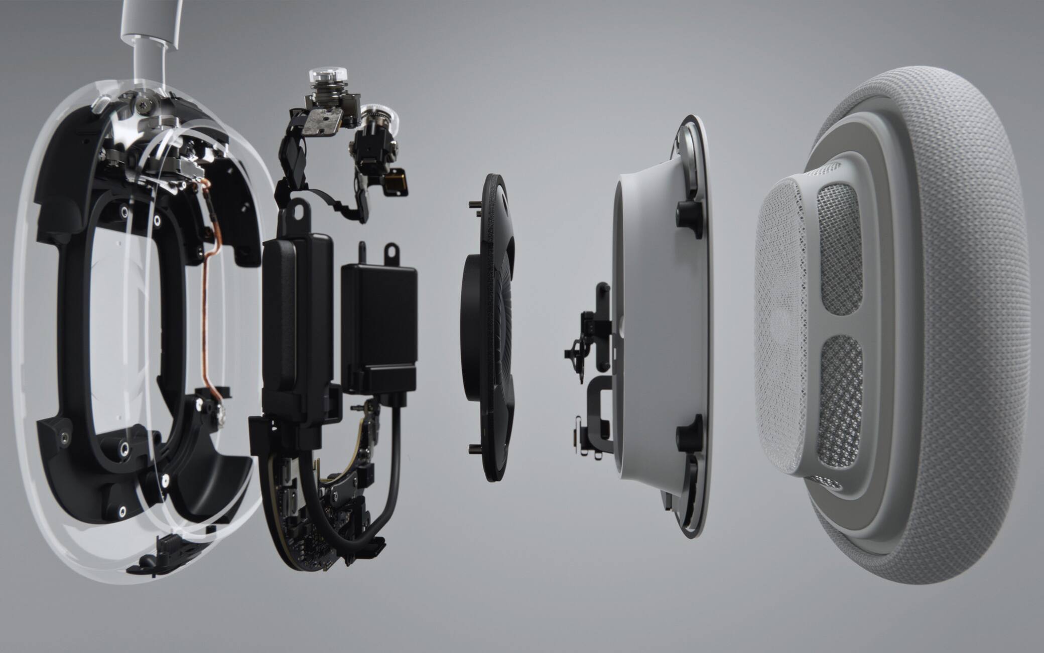 Le AirPods Max sono certamente delle cuffie “importanti”, adatte agli amanti della musica, del design, dell’audio. Combinano un design acustico su misura, la cancellazione attiva del rumore, l’audio spaziale e un chip H1 - presente in entrambi i cuscinetti auricolari - che con un software evoluto sfrutta l’audio computazionale per garantire un’esperienza di ascolto della massima qualità possibile. Andando più nel tecnico, sono costituite da un driver progettato da Apple da 40 millimetri; inoltre grazie a un esclusivo motore con doppio magnete ad anello in neodimio riescono a mantenere una distorsione armonica totale inferiore all’1% nell’intera gamma udibile. Sopra il cuscinetto auricolare destro troviamo una Digital Crown (molto simile a quella di Apple Watch, per intenderci) che dà la possibilità se ruotata di regolare in modo preciso il volume, se premuta, invece, di mettere in pausa e di riprendere un brano, di rispondere o terminare telefonate, di attivare Siri. Tramite un pulsante dedicato, invece, è possibile passare dalla modalità di cancellazione del rumore alla modalità trasparenza (che ci permette di ascoltare quello che avviene intorno a noi). Il collegamento e la prima configurazione sono semplici e immediati. Per quanto riguarda le caratteristiche “fisiche” delle cuffie abbiamo nella parte superiore una maglia traspirante che si sviluppa lungo l’archetto; la cornice dell’archetto è in acciaio inossidabile mentre i cuscinetti auricolari sono costruiti in memory foam e fissati all’archetto tramite un meccanismo che bilancia e distribuisce la pressione delle cuffie.