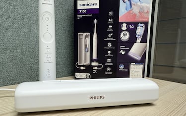 Sonicare 7100 Series è il nuovo spazzolino elettrico proposto da Philips Personal Health, dotato della tecnologia Next Generation Sonicare e particolarmente efficace nella rimozione della placca, nel miglioramento della salute dentale e dello sbiancamento dei denti. Ha una batteria di lunga durata e nella confezione sono presenti, oltre alla base di ricarica USB, un astuccio da viaggio (con il suo cavo di ricarica) e due testine.