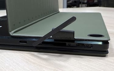 A livello di connettività troviamo due porte USB4 di tipo C ad alta velocità che supportano ricarica rapida, display esterni con qualità fino a 5K e trasferimenti dati fino a 50 Gbps. Presente anche un lettore di schede SD/microSD (l’adattatore è incluso). Una delle due porte USB-C e il lettore di schede si trovano addirittura dietro a uno sportellino, per la massima protezione. In dotazione c’è anche la ASUS Pen, utile per firmare documenti o prendere appunti: si comporta molto bene e la latenza è davvero bassa.