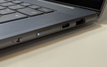 La webcam FHD ha la caratteristica di avere un pulsante, posto sul lato destro del laptop, in grado di disattivarla completamente a livello di chip, per una maggiore sicurezza. Dobbiamo ammettere di aver trovato un po’ scomodo trovare l’interruttore della webcam sul lato destro, così come il pulsante di accensione del pc, anch’esso posto lateralmente: trasportando il computer in uno zaino ci è capitato un paio di volte di azionarlo per sbaglio. Ci è piaciuta invece molto la tastiera: i tasti hanno una corsa di 1,5mm, scrivere è davvero molto comodo e abbiamo trovato piacevole la sensazione del click sotto i polpastrelli. Tra le altre caratteristiche degne di nota, presente la compatibilità con le reti Wi-Fi7.