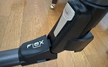Elemento distintivo della gamma, il tubo flessibile con tecnologia Flex: è presente anche in questo modello e permette di pulire efficacemente anche sotto i mobili senza doversi piegare. Molto semplicemente si preme il pulsante e il tubo si piega. Con un facile movimento all’indietro il tubo torna ad unirsi. A questo si aggiunge la spazzola con luci LED, progettata per illuminare le zone buie e individuare la polvere nascosta. Anche se non è dotata di tecnologia laser, come in alcuni modelli concorrenti, si rivela comunque estremamente utile. Molto utile anche l’anello rosso che permette di attivare nell’immediato la funzione booster, appena rilasciato il motore torna alla modalità automatica.