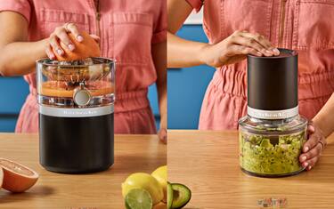 Il nuovo Spremiagrumi cordless KitchenAid Go grazie al movimento a inversione automatica estrae ogni goccia di succo da agrumi di ogni dimensione, mentre il serbatoio da 473 ml con beccuccio di precisione consente di versare senza schizzi. Tutti i componenti sono lavabili in lavastoviglie, rendendo la pulizia semplice e veloce. Perfetto per colazioni all’aperto o drink al tramonto, questo piccolo elettrodomestico unisce eleganza e funzionalità in un formato portatile.