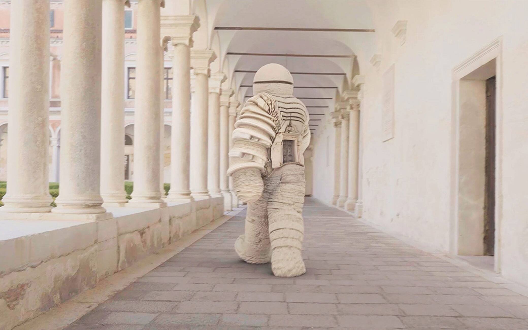 L’idea di fondo dell’opera digitale realizzata da Mattia Casalegno e Martux m. Nato era quella di utilizzare l’enorme materiale digitale proveniente dal materiale di archivio della fondazione Cini per realizzare opere d’arte digitali innovative. Idea e progetto alla base delle attività del Centro Digitale – ARCHiVe, frontiera del contemporaneo della Fondazione Giorgio Cini, che ogni due anni commissiona un’opera d’arte ad artisti internazionali con l’obiettivo di creare nuove narrazioni e inedite visioni dell’Isola. E se nel 2022 fu “La Maschera del Tempo”, l’opera audiovisiva scelta nel 2024, il collettivo Universal Everything ha creato Chameleon, un lavoro digitale in cui la loro iconica “figura che cammina” attraversa i chiostri, il parco, le biblioteche della Fondazione.