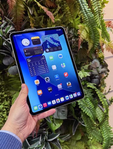Il design del nuovo iPad Pro con chip M5, venduto nelle versioni da 11 e 13 pollici e disponibile nei colori nero siderale e argento, è praticamente identico - anche nel peso e nello spessore - al modello precedente. iPad Pro è leggero da trasportare (la versione che Apple ci ha inviato in prova, quella più compatta con display da 11 pollici, pesa poco più di 400 grammi - il modello da 13 non arriva ai 600), sia se lo portiamo tra le mani sia in uno zaino o in una borsa. Ed è il top per lavorare in posti stretti come bar, sale d’attesa, treni o aerei. A bordo oltre al pulsante di accensione e ai tasti per il volume troviamo quattro altoparlanti e quattro microfoni di qualità professionale con supporto alle modalità Wide e Voice Isolation (c’è - spiegano da Apple - anche il rilevamento automatico dell’occlusione del microfono, per un audio ancora migliore).