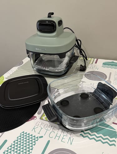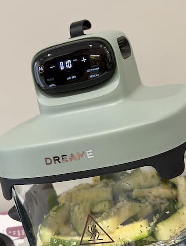 La nuova friggitrice ad aria di Dreame permette di cucinare o di riscaldare le pietanze grazie a cinque funzionalità. In confezione ha due contenitori di vetro (uno più grande, uno più piccolo), vanta materiali e tecnologie all’avanguardia nella sicurezza e, nella nostra prova, ci ha permesso di cucinare piatti sempre molto gradevoli