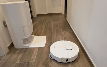 Sul fronte lavaggio, il sistema a doppi mop rotanti MaxiReach si estende fino a 4 cm per arrivare in angoli e lungo i battiscopa, con sollevamento automatico di 10,5 mm sui tappeti e boost di aspirazione quando li rileva via sensori ultrasonici. Dopo ogni ciclo, la stazione avvia lavaggio e asciugatura ad aria calda dei mop per evitare odori e muffe, una funzione rara nella fascia 400–500 €. Il robot ha anche un serbatoio integrato da 80 ml con tre livelli di erogazione (delicato, normale, intenso), utile per adattare l’acqua allo sporco e alle aree pet‑friendly.
