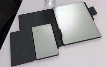 Partiamo dalla parte esterna: il modello Pro Move si distingue dal Pro per essere molto più pratico e tascabile, a nostro avviso: ha infatti un display Canvas Color da 7,3 pollici con supporto a oltre 10mila tonalità di colori, luce frontale integrata e dimensioni da agendina tascabile con un peso di 235 grammi e 6,5 millimetri di spessore: è pensato dunque per entrare anche in tasche o piccole borse.