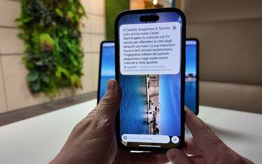 Ultima funzionalità presente, per il momento, su Apple Intelligence è l’Intelligenza Visiva, che aiuta l’utente ad ottenere all’istante informazioni su oggetti e luoghi. Intelligenza Visiva può riassumere e copiare il testo inquadrato con la fotocamera, tradurlo in un’altra lingua, rilevare numeri di telefono o indirizzi e-mail permettendo di aggiungerli ai contatti, e può anche fare ricerche su Google (un po’ come la funzionalità Cerca e Cerca su Android). In pochi istanti - davanti a una foto del Castello Aragonese di Taranto - abbiamo ricevuto, grazie al collegamento con ChatGPT - informazioni sul monumento e anche su come visitarlo.