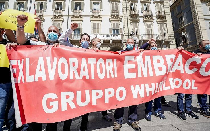 La protesta è stata organizzata da Fim, Fiom, Uilm e Uglm Torino, in attesa dell'incontro convocato per il 19 maggio dal presidente del Piemonte, Alberto Cirio