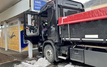 (ANSA) - BOLZANO, 20 DIC - Per un malore dell'autista un camion è finito contro la facciata dell'area di servizio Laimburg ovest dell'autostrada del Brennero. Fortunatamente non ci sono stati feriti. Il conducente è stato preso in cura dal soccorso sanitario. Sul posto sono intervenuti la Croce bianca, i vigili del fuoco e l'elisoccorso e le forze dell'ordine.