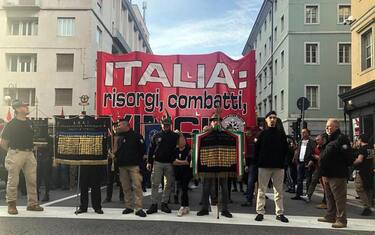 (ANSA) - TRIESTE, 3 NOV - È partito da largo Riborgo, mentre dalle casse acustiche montate su automezzi venivano diffuse le note della Primavera di Vivaldi, il corteo organizzato da CasaPound in memoria della vittoria dell'Italia 100 anni fa della Grande Guerra. In testa al corteo, tra fumogeni tricolori, ci sono diversi labari, tra cui quello della Federazione nazionale Arditi d'Italia con le medaglie d'oro e della Associazione nazionale Arma milizia, Seguono tricolori, bandiere di CasaPound, bandiere istriana, fiumana e dalmata. E ancora lo striscione con sfondo rosso e scritta bianca 'Difendere l'Italia fino alla vittoria', e più in là un altro striscione, anche questo rosso ma con scritta bianca e nera 'Italia: risorgi, combatti, vinci!'. (ANSA).