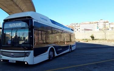 (ANSA) - TRIESTE, 08 FEB - E' stato presentato per la prima volta in Italia, a Trieste, un autobus alimentato a idrogeno del più importante produttore di autobus e pullman in Europa, la portoghese CaetanoBus, realizzato in collaborazione con Toyota.