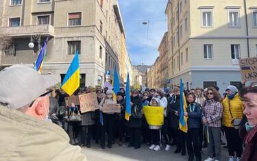 (ANSA) - TRIESTE, 26 FEB - Bandiere dell'Ucraina che sventolano, cartelli che chiedono lo 'stop alla guerra', nastri gialli e blu ai polsi. Anche a Trieste i cittadini ucraini sono scesi in piazza per chiedere la fine del conflitto nella loro terra d'origine. L'occasione è stato un presidio organizzato da movimenti pacifisti, guidati dal Comitato per la pace Danilo Dolci. In piazza, a Largo Barriera, anche bandiere di Cgil, Cisl, Usb, Rifondazione comunista, Arcigay e bandiere della Pace. Centinaia i presenti. Durante la manifestazione un gruppo di cittadini ucraini ha contestato alcuni interventi di natura politica tenuti al microfono.