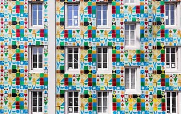 (ANSA) - VENEZIA, 13 MAG - Torna a risplendere a Venezia la facciata-gioiello dell'hotel "Ausonia Hungaria", uno dei grandi alberghi del Lido di inizio '900, attrazione per la celebre facciata liberty in maiolica. Dopo l'opera di restauro curata sotto le indicazioni della Sovrintendenza, la facciata frontale, con i 700 metri quadri di maioliche policrome del ceramista bassanese Luigi Fabris, può essere nuovamente ammirata nella sua magnificenza. Ma non solo: l'altro tesoro dell'Hungaria (il nome originale pensato per la clientela mitteleuropea d'inizio secolo) è nella facciata a sud-est, ricoperta da 3.358 formelle in vetro di Murano ideate dall'artista inglese Joe Tilson.