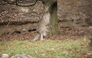 (ANSA) - VERONA, 16 DIC - Dal marsupio di Mrs Grey spunta ancora solo la sua testolina ma a guardarlo bene, il piccolo canguro grigio orientale sembrerebbe quasi pronto a spiccare il suo primo salto nel mondo esterno. Il piccolo canguro è il nuovo arrivato al Parco Natura Viva di Bussolengo (Verona) e quando la sua mamma bruca a terra, lui allunga il collo per curiosare ed annusare ma evidentemente non è ancora pronto a lasciare quella tasca che lo contiene così premurosamente. Di lui non si conosce l'età precisa né il sesso. "La nascita di una canguro - spiega Camillo Sandri, veterinario e direttore tecnico del Parco Natura Viva - è sempre difficile da datare poiché il parto e le prime settimane di allattamento avvengono nel ventre della mamma senza che il piccolo sia visibile dall'esterno. Un mese fa ci accorgevamo già di qualcosa che si muoveva nel marsupio ma per vederlo saltar fuori e conoscerne il sesso, non ci resta che attendere qualche altra settimana".