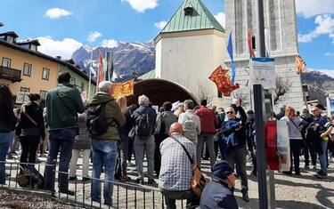 (ANSA) - CORTINA D'AMPEZZO, 17 APR - Quasi un migliaio di manifestanti no-vax si è radunato oggi a Cortina d'Ampezzo per un corteo di protesta contro le misure anti-Covid. Persone provenienti un po' da tutto il Veneto, in particolare da Padova, che ritrovatesi in piazza Di Bona hanno sfilato lungo Corso Italia, lanciando i soliti slogan contro la "dittatura sanitaria", il Governo e i media. Un evento inedito, in queste dimensioni, per la Regina delle Dolomiti, che - pochi i turisti a passeggio - è sembrata vivere con distacco la rumorosa manifestazione, controllata dalla polizia. (ANSA).