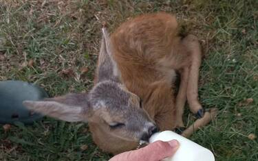 (ANSA) - VENEZIA, 18 LUG - Un cucciolo di femmina di capriolo è stato trovato e messo in salvo dal Servizio Regionale Antincendio e dai volontari della Protezione Civile di San Michele al Tagliamento (Venezia) all'interno dell'Oasi Foce del Tagliamento di Bibione, ai bordi dell'area colpita dal grande incendio della scorsa settimana.