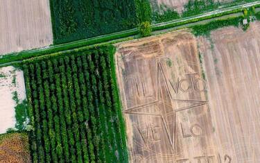 L'opera di 15.000 mq si trova a Castagnaro (Verona), realizzata a mano libera con trattore e aratro su di un campo di stoppie di grano trebbiato. Gambarin non è nuovo alle opere di 'land art' , dedicandone alcune a temi ecologici, come COP26 Glasgow, Greta Thunberg, l'Urlo della terra, Water, a personalità di spicco tra cui Papa Francesco, Leonardo da Vinci, Dante, Beethoven, Dostoevskij, Fidel, Mandela, etc. (ANSA).