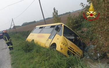 (ANSA) - VERONA, 14 OTT - Due bambine e il conducente di uno scuolabus sono rimasti feriti in un incidente stradale avvenuto oggi pomeriggio a Minerbe (Verona). Il mezzo adibito a trasporto scolastico è uscito di strada, restando incastrato in un fossato. Il pullmino stava riportando a casa gli alunni delle scuole elementari. Ancora da chiarire le cause dell'incidente.